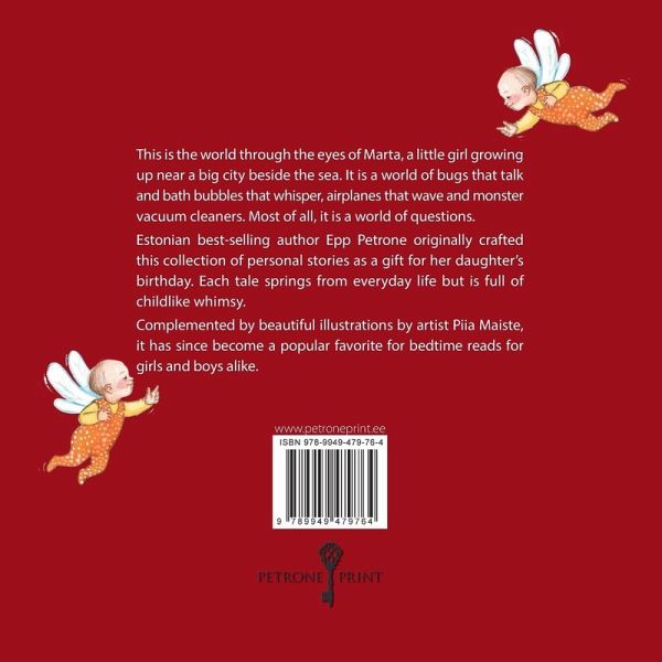 This is the world through the eyes of Marta, a little girl growing up near a big city beside the sea. It is a world of bugs that talk and bath bubbles that whisper, airplanes that wave and monster vacuum cleaners. Most of all, it is a world of questions. Estonian best selling author Epp Petrone originally crafted this collection of personal stories as a gift for her daughter's birthday. Each tale springs from everyday life but is full of childlike whimsy. Complemented by beautiful illustrations by artist Piia Maiste, it has since become a popular favorite for bedtime reads for girls and boys alike.