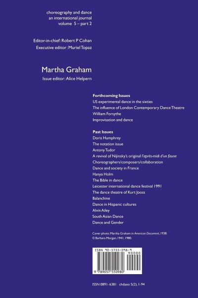 Although much has been written about the dancer and prolific choreographer Martha Graham, no publication has specifically examined her radical period, the body of innovative work from the 1930s and 40s which culminated in the full-length Clytemnestra of 1958. This publication focuses on this highly creative time in of Graham's life, providing further insight into her extraordinary career and her many contributions to the field of modern dance. Scholars for years to come will find helpful and fascinating snippets from Graham's life within these pages.