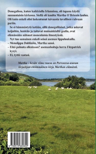 Donegalissa, kuten kaikkialla Irlannissa, oli tapana käydä sunnuntaisin kirkossa. Siellä oli kuultu Marthan laulua. Oli kuin enkeli olisi laskeutunut taivaasta tavallisen rahvaan pariin. Se ei hämmästytä ketään, sillä donegalilaiset, jotka uskovat keijuihin, henkiin ja taitavat muinaiskieltä gealia, ovat elämässään nähneet monenlaisia ilmestyksiä. Nyt tuo samainen enkeli seisoi aseman lippuluukulla. -Menolippu Dubliniin, Martha sanoi. -Eikö paluuta ollenkaan? asemanhoitaja herra Fitzpatrick kysyi. -Ei, tyttö vastasi. Tämä on ensimmäinen kirja Marthan elämästä.