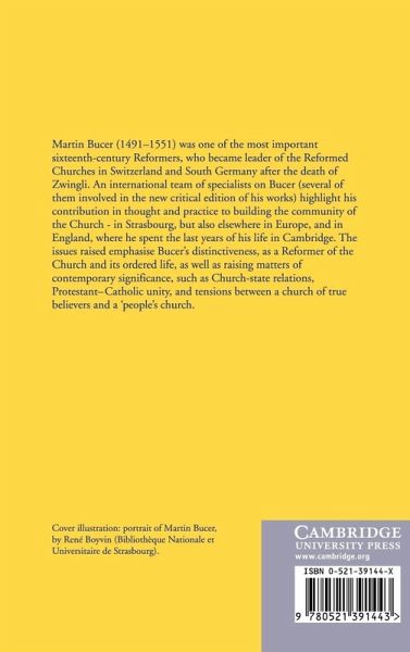 Martin Bucer (1491-1551) was one of the most important sixteenth-century Reformers, who became leader of the Reformed Churches in Switzerland and South Germany after the death of Zwingli. An international team of specialists on Bucer (several of them involved in the new critical edition of his works) highlight his contribution in thought and practice to building the community of the Church - in Strasbourg, but also elsewhere in Europe, and in England, where he spent the last years of his life in Cambridge. The issues raised emphasise Bucer's distinctiveness, as a Reformer of the Church and its ordered life, as well as raising matters of contemporary significance, such as Church-state relations, Protestant-Catholic unity, and tensions between a church of true believers and a 'people's' church.