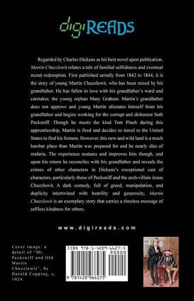 Regarded by Charles Dickens as his best novel upon publication, "Martin Chuzzlewit" relates a tale of familial selfishness and eventual moral redemption. First published serially from 1842 to 1844, it is the story of young Martin Chuzzlewit, who has been raised by his grandfather. He has fallen in love with his grandfather's ward and caretaker, the young orphan Mary Graham. Martin's grandfather does not approve and young Martin alienates himself from his grandfather and begins working for the corrupt and dishonest Seth Pecksniff. Though he meets the kind Tom Pinch during this apprenticeship, Martin is fired and decides to travel to the United States to find his fortune. However, this new and wild land is a much harsher place than Martin was prepared for and he nearly dies of malaria. The experience matures and improves him though, and upon his return he reconciles with his grandfather and reveals the crimes of other characters in Dickens's exceptional cast of characters, particularly those of Pecksniff and the arch-villain Jonas Chuzzlewit. A dark comedy, full of greed, manipulation, and duplicity intertwined with humility and generosity, "Martin Chuzzlewit" is an exemplary story that carries a timeless message of selfless kindness for others. This edition is printed on premium acid-free paper.