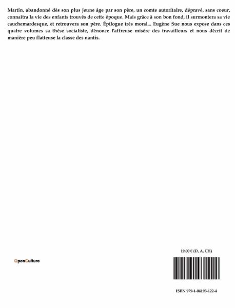 Martin, abandonné dès son plus jeune âge par son père, un comte autoritaire, dépravé, sans coeur, connaîtra la vie des enfants trouvés de cette époque. Mais grâce à son bon fond, il surmontera sa vie cauchemardesque, et retrouvera son père. Épilogue très moral... Eugène Sue nous expose dans ces quatre volumes sa thèse socialiste, dénonce l'affreuse misère des travailleurs et nous décrit de manière peu flatteuse la classe des nantis.