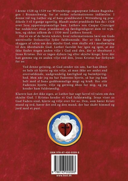 I årene 1528 og 1529 var Wittenbergs sognepræst Johann Bugenhagen i Braunschweig, for at ordne reformationens indførelse. I denne tid tog Luther sig af hans prædikestol i Wittenberg og prædikede 3 til 4 gange ugentlig. Blandt andet prædikede han da i 1528 over Jesu ypperstepræstelige bøn. Luthers ven Caspar Crutziger har nedskrevet disse prædikener og færdigredigeret dem til trykken, og sådan udkom de i 1530 med Luthers forord. Det er en af de første tekster, hvor reformationens lære om Guds universelle frelsesvilje lyder fuldtonende. Her er ikke længere skyggen af talen om den skjulte Gud, som skulle stå i modsætning til den åbenbarede Gud. Luther fastslår her igen og igen, at der ikke findes nogen anden vilje i Gud end den, der er åbenbaret i Jesus Kristus. Der er ingen dybere lag eller skjulte kroge, hvor der kan gemme sig en anden vilje end den, Jesus Kristus har forkyndt for os: Ved denne gerning, at Gud sender sin søn, har han åbnet os hele sit hjerte og sin vilje, så man ikke ser andet end overvældende, uudgrundelig kærlighed og barmhjertighed. Men når jeg nu har Faderens hjerte, så har jeg ham helt med al hans guddommelige magt og kraft. Her står Faderens hjerte, vilje og gerning åben for mig, og jeg kender ham fuldstændig. Klarere kan det ikke siges, at Luther har sagt farvel til talen om den skjulte Gud. I Kristus kender vi Gud fuldstændig. Jesus viser os Gud Faders sind, hjerte og vilje over for os. Det er Djævelen, der forsøger at tegner en streg og laver en adskillelse mellem Gud og Kristus med to slags tanker, så man søger Kristus på korset, men Gud højt oppe i Himlen. Derfor skal vi vænne os til sådan at anse og høre den herre Kristus, som at vi visselig ser og hører Faderen. Kort sagt, du kan intet se og høre af Kristus, uden at du ser og hører Faderen selv. Den, som hører Kristi mund og ord, hører det ord og den mund, der har skabt himmel og jord med et pust.