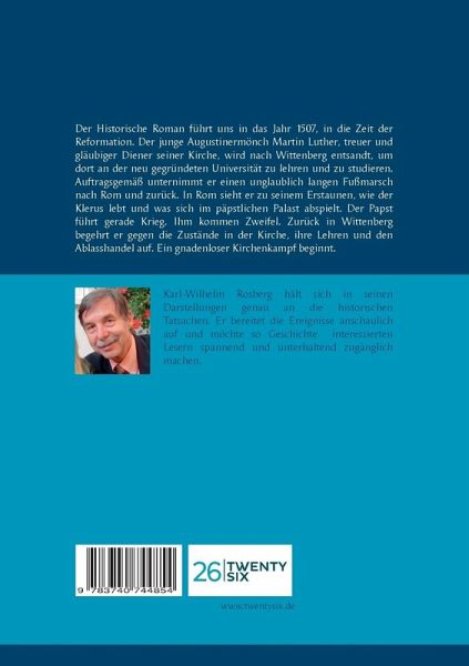 Der Historische Roman führt uns in das Jahr 1507 und in die Zeit der Reformation zurück. Der junge Augustinermönch Martin Luther, treuer und gläubiger Diener seiner Kirche, wird nach Wittenberg entsandt, um dort an der neu gegründeten Universität zu lehren und zu studieren. Rasch steigt er in der Kirchenhierarchie auf und unternimmt einen unglaublich langen Fußmarsch nach Rom und zurück. In Rom sieht er zu seinem Erstaunen, wie der Klerus lebt und was sich im päpstlichen Palast abspielt. Der Papst führt gerade Krieg. Ihm kommen Zweifel. Zurück in Wittenberg studiert Luther intensiv die Bibel im Urtext und erkennt, dass die römisch-katholische Lehre damit nicht übereinstimmt. Insbesondere der Römerbrief von Paulus öffnet ihm eine völlig andere christliche Lehre. Er meldet das seinen Vorgesetzten und schreibt, nachdem auch der Ablasshandel seinen Widerstand weckt, Briefe an den Erzbischof von Mainz, auch an den Papst. Die Kirche reagiert ablehnend, schließlich wird gegen ihn der Bann ausgesprochen und der Kaiser verhängt die Reichsacht. Der Roman schildert den Kirchenkampf und das Leben Martin Luthers im Kampf für Gewissensfreiheit gegen Kaiser und Papst.