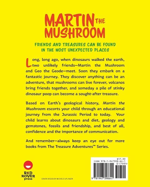 Friends and treasures can be found in the most unexpected places. Long, long ago, when dinosaurs walked the earth, two unlikely friends--Martin the mushroom and Geo the geode--meet. Soon they embark on a fantastic journey. They discover anything can be an adventure, that mushrooms can live forever, volcanoes bring friends together, and someday a pile of stinky dinosaur poop can become a sought-after treasure. Based on earth's geological history, Martin the Mushroom escorts your child through an educational journey from the Jurassic period to today. Your child learns about dinosaurs and diet, geology and gemstones, fossils and friendship, and best of all, confidence and the importance of communication. And remember--always keep an eye out for more books from the Treasure Adventures Series.