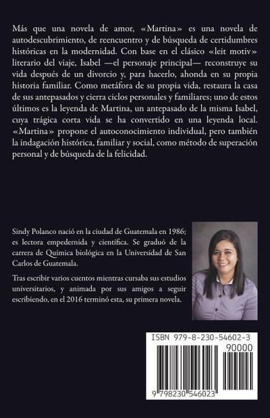 Más que una novela de amor, Martina es una novela de autodescubrimiento, de reencuentro y de búsqueda de certidumbres históricas en la modernidad. Con base en el clásico leit motiv literario del viaje, Isabel -el personaje principal- reconstruye su vida después de un divorcio y, para hacerlo, ahonda en su propia historia familiar. Como metáfora de su propia vida, restaura la casa de sus antepasados y cierra ciclos personales y familiares; uno de estos últimos es la leyenda de Martina, un antepasado de la misma Isabel, cuya trágica corta vida se ha convertido en una leyenda local. Martina propone el autoconocimiento individual, pero también la indagación histórica, familiar y social, como método de superación personal y de búsqueda de la felicidad.