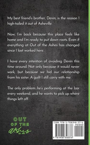 My best friend's brother, Devin, is the reason I high-tailed it out of Asheville. Now, I'm back because this place feels like home and I'm ready to put down roots. Even if everything at Out of the Ashes has changed since I last worked here. I have every intention of avoiding Devin this time around. Not only because it would never work, but because we hid our relationship from his sister. A guilt I still carry with me. The only problem...he's performing at the bar every weekend, and he wants to pick up where things left off.