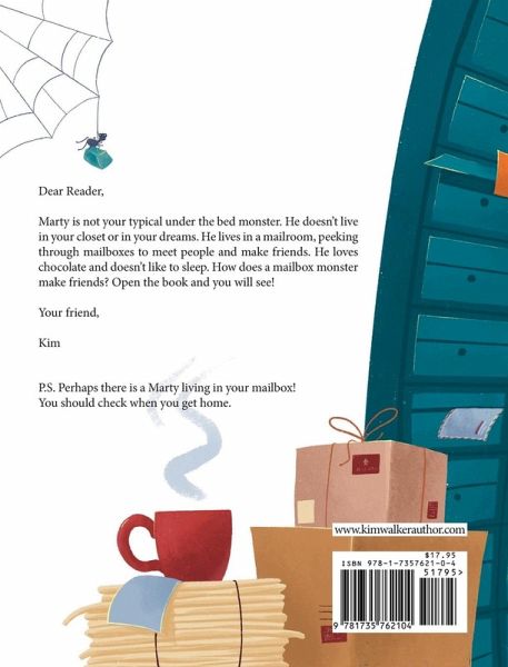 Marty is not your typical under the bed monster. He doesn't live in your closet or in your dreams. He lives in a mailroom where he makes his friends. He loves chocolate and doesn't like to sleep. He wants to show his friends how much he loves them, but he is scared to come out from behind the wall of mailboxes because he is different. Marty decides to write each of his friends a letter, but he falls asleep before he gets the chance to give them their letters. Oh no!