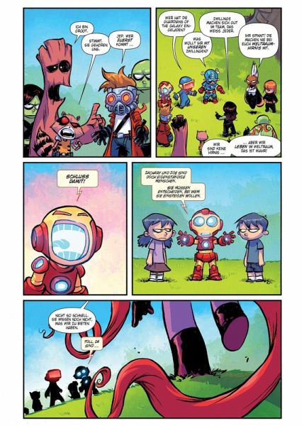 KLEINE HELDEN, GROSSER SPASS!Wenn die knuffigen Baby-Versionen aus dem Marvel-Universum streiten, fliegen cartoonmäßig die Fetzen! Die streitsüchtigen Miniaturausgaben der Helden und Schurken lassen es zwischen Schule und Baumhaus so richtig krachen. Mit dabei sind Iron Man, Captain America und viele andere Avengers, die X-Men, Spider-Man, die Guardians of the Galaxy und die Inhumans! Nie sah Marvel-Action so niedlich aus.Ein riesiges Vergnügen mit Marvels kleinsten Helden, witzig und bezaubernd in Szene gesetzt vom Fanliebling und preisgekrönten Ausnahmezeichner Skottie Young (DER ZAUBERER VON OZ, ROCKET RACCOON).