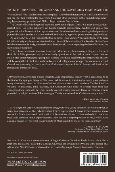 ""Who is This? Even the Wind and the Waves Obey Him!"" (Mark 4:41) Who is Jesus? What did he come to accomplish? And what difference does it make in the way I live my life? You will find the answers to these and other questions in this homiletical commentary by expository preacher and Bible college professor Steven Crane. The Gospel of Mark is the gospel about the good news of Jesus Christ. It is a fast-paced, action-packed book--as is this scholarly, yet highly readable commentary. Readers will gain a new appreciation for the content, the organization, and the often-overlooked writing techniques incorporated by Mark into his narrative, and will be invited to apply Scripture in their personal lives. As you read, you will investigate the true nature of Jesus Christ. While some today try to deny Christ's divinity, explain away his miracles, or discredit the authority of the Word of God--Crane handles these attacks and gives credence to the time-held truths regarding the Son of Man and the inspiration of Scripture. This volume, written in sermonic form, provides clear explanations regarding even the most difficult of Bible passages and includes study questions at the end of each chapter that are suitable for either personal or group use. Readers who have discounted the importance of Mark will be compelled to look at it with fresh eyes and will gain a new appreciation for our second Gospel. As you study, be ready to allow God to work in your life and Marvel with Mark at the person and purpose of Jesus.