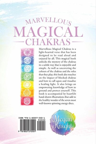 Marvellous Magical Chakras is a light-hearted verse that has been designed to be read aloud and enjoyed by all. This magical book unlocks the mystery of the chakras in a subtle way that is enjoyable and simple. As well as uncovering the colours of the chakras and the roles that they play, this book also touches on the impact of blocked chakras and how to call upon and visualise a healing light. It also brings an empowering knowledge of how to ground and protect yourself. This book is accompanied by heartfelt hand-drawn illustrations that add to the healthy wonder of the seven most well-known spinning energy discs.
