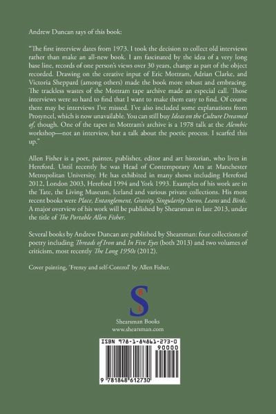 "The first interview here with Allen Fisher dates from 1973. I took the decision to collect old interviews rather than make an all-new book. I am fascinated by the idea of a very long base line, records of one person's views over 30 years, change as part of the object recorded. Drawing on the creative input of Eric Mottram, Adrian Clarke, and Victoria Sheppard (among others) made the book more robust and embracing." (Andrew Duncan)