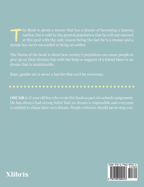 The Book is about a mouse that has a dream of becoming a famous author but is told by the general population that he will not succeed at this goal with the only reason of this is the fact he is a mouse and a mouse has never succeeded at being an author. The theme of the book is about society's prejudices can cause people to give up on their dreams but with the help or support of a friend there is no dream that is unattainable. Race, gender etc is never a barrier that can't be overcome.
