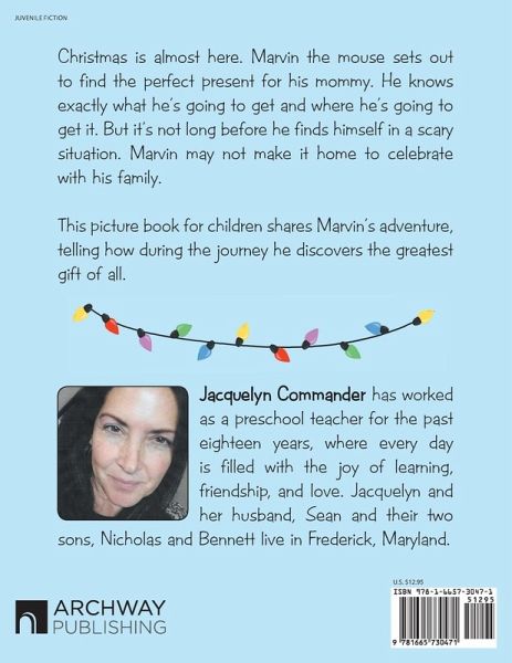 Christmas is almost here. Marvin the mouse sets out to find the perfect present for his mommy. He knows exactly what he's going to get and where he's going to get it. But it's not long before he finds himself in a scary situation. Marvin may not make it home to celebrate with his family. This picture book for children shares Marvin's adventure, telling how during the journey he discovers the greatest gift of all.