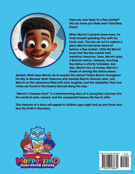 In this heartwarming story, we follow the young protagonist, Marvin, on a journey that teaches him valuable life lessons about hard work, patience, and the nature of rewards. The story begins with Marvin staying with his Uncle Jack while his parents are out of town. Uncle Jack takes Marvin to an intriguing place called the flea market, where Marvin initially wonders what a flea market is, fearing it is a place for fleas. Marvin's perception quickly changes as he explores the flea market and discovers its hidden treasures. However, when Marvin attempts to touch a Batman statue that he desires, Uncle Jack swats his hand. It's then Marvin learns the importance of money, as he realizes he has none to buy the coveted statue. Uncle Jack suggests Marvin should get a job to earn money to buy the desired statue. Marvin is offered a chance to work by Mother Pearl, who manages a booth filled with various items, including Batman statues. As Marvin embarks on his first job, he learns the value of hard work and commitment, unpacking boxes and arranging items on shelves. At the end of the day, Marvin eagerly anticipates payment for his work. However, Marvin's expectations are challenged when he realizes Mother Pearl didn't promise monetary payment. The story takes an uplifting turn when Mother Pearl explains the true nature of rewards. Marvin receives the Batman statue he longed for as a reward for his dedication and effort throughout the day. This heartwarming story shows Marvin's growth as he discovers the value of labor and the satisfaction of earning what he desires. Marvin's Treasure Hunt is a touching tale emphasizing the importance of hard work, patience, and the notion that rewards come in various forms. Through Marvin's journey, readers ages eight and up will find inspiration and a reminder that some of life's most meaningful treasures aren't found in a store but earned through dedication and perseverance.