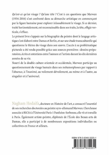 Le présent livre s'appuie sur la biographie du peintre dont le langage artistique s'est élaboré entre Damas et Berlin, et sur une étude transculturelle qui questionne le thème du visage dans son oeuvre. L'accès à sa problématique picturale a été rendu possible grâce aux sources premières : dessins préparatoires, écrits et entretiens entre l'auteure et l'artiste durant les dix dernières années de sa vie.