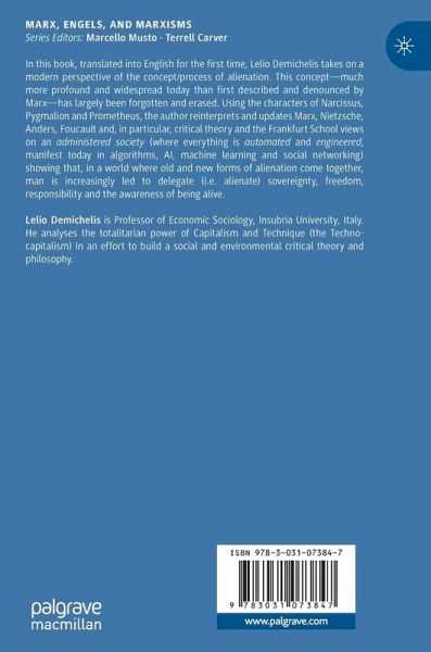 In this book, translated into English for the first time, Lelio Demichelis takes on a modern perspective of the concept/process of alienation. This concept-much more profound and widespread today than first described and denounced by Marx-has largely been forgotten and erased. Using the characters of Narcissus, Pygmalion and Prometheus, the author reinterprets and updates Marx, Nietzsche, Anders, Foucault and, in particular, critical theory and the Frankfurt School views on an administered society (where everything is automated and engineered, manifest today in algorithms, AI, machine learning and social networking) showing that, in a world where old and new forms of alienation come together, man is increasingly led to delegate (i.e. alienate) sovereignty, freedom, responsibility and the awareness of being alive.