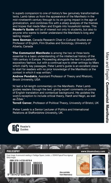 Introducing the most famous work of the nineteenth-century radical thinkers Karl Marx and Frederick Engels, this comprehensive reader's guide to the Communist Manifesto explores the key themes, ideas and issues of the revolutionary pamphlet. Beginning with a discussion of the intellectual, political and social context of the Manifesto, the Reader's Guide illustrates the themes by clearly relating points in the work to ideas and theories made in other texts written by Marx and Engels. This is followed by a closer examination and analysis of the text that covers the introductory statement and each of the chapters in detail and discusses its style, structure and intended audiences. This guide also explores the ways in which the Manifesto was received both during the lives of Marx and Engels and in the twentieth century, for example the Soviet Union's version of Marxism, China's re-interpretations of the ideas, and the innovative political philosophy found in Western analytical Marxism. As well as presenting relevant biographical points about Marx and Engels and giving concise information on prominent people mentioned in the text, this valuable study resource features discussion questions and annotated guides to further reading. For students studying political philosophy and political theories, Marx and Engels' Communist Manifesto: A Reader's Guide provides a better understanding of the ideas, theories and contexts discussed in the most famous work of the writers who founded the ideology of Marxism.
