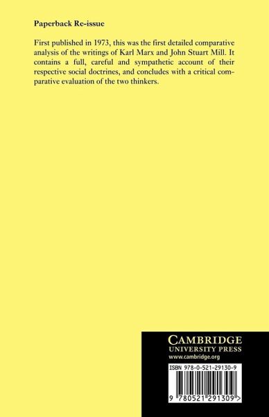 First published in 1973, this was the first detailed comparative analysis of the writings of Karl Marx and John Stuart Mill. it contains a full, careful and sympathetic account of their respective social doctrines, and concludes with a critical comparative evaluation of the two thinkers.
