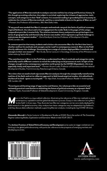 Marx in the Field is a unique edited collection illustrating the relevance of Marxian methods to study contemporary capitalism and the global development process. Essays in the collection bring Marx 'to the field' in three ways. They illustrate how Marxian categories can be concretely deployed for field research in the global economy, they analyse how these categories may be adapted during fieldwork and they discuss data collection methods supporting Marxian analysis, including during COVID-19 times.
