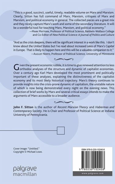 "This is a good, succinct, useful, timely, readable volume on Marx and Marxism. Clearly, Sitton has full command of Marx, Marxism, critiques of Marx and Marxism, and political economy in general. The collected pieces are a great mix and they nicely capture Marx's work and some of the secondary literature. It will be a wonderful tool for teaching Marx, Marxism, and political economy." - Mark Mattern, Professor of Political Science, Baldwin-Wallace College and Co-Editor of New Political Science: A Journal of Politics and Culture