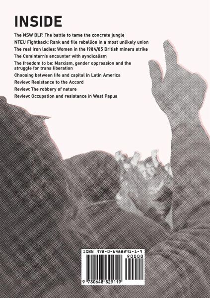 Issue 20 of the Marxist Left Review focuses on the place of unions in the class struggle: with pieces on the high-points of radical unionism, relations between syndicalists and the communist left, and the struggle against conservative officials going on as we speak. The full list of articles is: The NSW BLF: The battle to tame the concrete jungle by Mick Armstrong NTEU Fightback: Rank and file rebellion in a most unlikely union by Diane Fieldes and Jordan Humphries The real iron ladies: Women in the 1984/85 British Miners Strike by Janey Stone The Comintern's encounter with syndicalism by Ian Birchall The freedom to be: Marxism, gender oppression and the struggle for trans liberation by April Holcombe Choosing between life and capital in Latin America by Jeffery R. Webber Review: Resistance to the Accord by Jack Crawford Review: The robbery of nature by Kate Doherty Review: Occupation and resistance in West Papua by Sam Pietsch