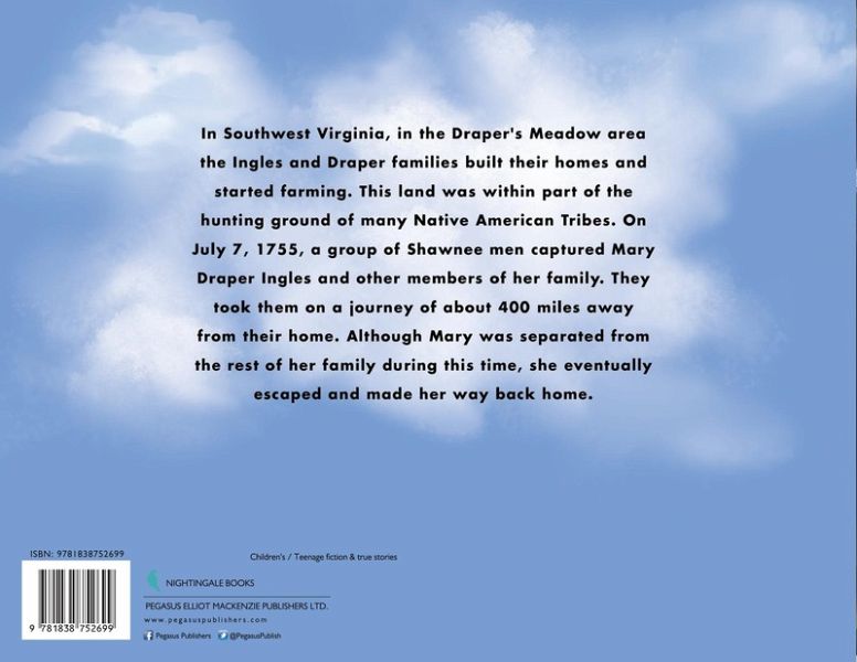 In Southwest Virginia, in the Draper's Meadow area the Ingles and Draper families built their homes and started farming. This land was within part of the hunting ground of many Native American Tribes. On July 7, 1755, a group of Shawnee men captured Mary Draper Ingles and other members of her family. They took them on a journey of about 400 miles away from their home. Although Mary was separated from the rest of her family during this time, she eventually escaped and made her way back home.