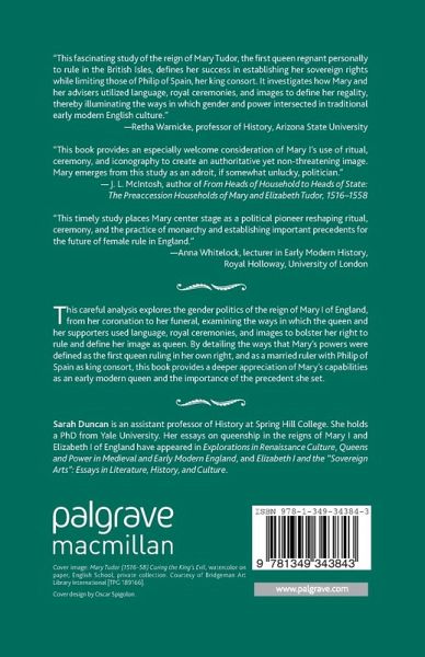 This book explores the gender politics of the reign of Mary I of England from her coronation to her funeral and examines the ways in which the queen and her supporters used language, royal ceremonies, and images to bolster her right to rule and define her image as queen.