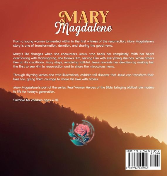 From living in darkness to becoming the first witness of the resurrection, Mary Magdalene's story is one of healing, transformation, devotion, and sharing the Good News. Mary's life is forever changed when she encounters Jesus, who sets her free and heals her completely. With a heart full of gratitude, she follows Him, serving with whatever she had. While others flee at His crucifixion, Mary remains by His side. Her devotion is rewarded when she becomes the first to witness the risen Christ and share the miraculous news with His disciples. Mary Magdalene is the fourth book in the Real Women Heroes of the Bible series, bringing biblical role models to life for today's generation. What you will find in this book: Engaging rhyming verses that children and parents will enjoy reading together Realistic illustrations that portray Mary, Jesus, and the disciples as real historical figures Biblically sound content that stays true to Scripture without adding extra details A discussion guide to spark meaningful conversations about healing, devotion, and faithfulness to Jesus Broad appeal that resonates with readers of all ages, edifying both children and adults alike This inspiring story teaches children that Jesus can transform their lives too, giving them courage to trust Him and share His love with others. Add Mary Magdalene to your collection today and continue the journey through the Real Women Heroes of the Bible series!