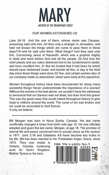 OUR WOMEN ASTONISHED US Luke 24:18 And the one of them, whose name was Cleopas, answering said unto him, Art thou only a stranger in Jerusalem, and hast not known the things which are come to pass there in these days?19 And he said unto them, What things? And they said unto him, Concerning Jesus of Nazareth, which was a prophet mighty in deed and word before God and all the people: 20 And how the chief priests and our rulers delivered him to be condemned to death, and have crucified him. 21 But we trusted that it had been he which should have redeemed Israel: and beside all this, to day is the third day since these things were done.22 Yea, and certain women also of our company made us astonished, which were early at the sepulchre; Women throughout history have been documented for doing many wonderful things! Never underestimate the importance of a woman! Without the women in the text above, we wouldn't have the witnesses to announce that our Saviour was not dead, but risen from the grave! This was the good news that would extent throughout history to give hope to millions around the world. The curse of sin was broken and we could be reconciled to God forever. If only we believe. Bill Morgan was born in Nova Scotia, Canada. His last name unofficially changed 4 times from birth until age 10. He was officially adopted and given the last name, Morgan, at age 18. The promise of eternal life and peace convinced him to accept Jesus as His saviour in 1971. John 3:16 and Galatians 4:6 have become key truths in his life. Bill has been married to his Trinidadian Angel, Grace, since 1973. They now reside in Ontario, Canada, continuing work for God's Kingdom. Mother Teresa is his hero.