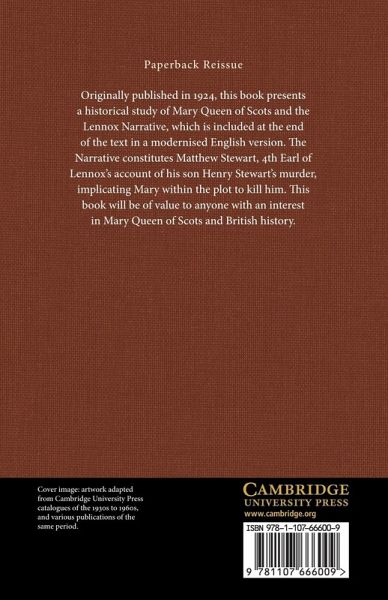 Originally published in 1924, this book presents a historical study of Mary Queen of Scots and the Lennox Narrative, which is included at the end of the text in a modernised English version. The Narrative constitutes Matthew Stewart, 4th Earl of Lennox's account of his son Henry Stewart's murder, implicating Mary within the plot to kill him. This book will be of value to anyone with an interest in Mary Queen of Scots and British history.