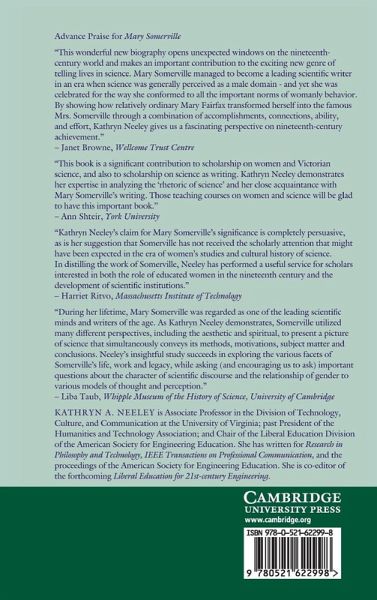 In an era when science was perceived as a male domain, Mary Somerville (1780-1872) became both the leading woman scientist of her day and an integral part of the British scientific community. She achieved this status through careful management of her gender identity and by creating rich, readable, and authoritative accounts of science that were rhetorically compelling, aesthetically satisfying, and valuable to the scientific community in the UK and abroad. This biography offers detailed analysis of the underlying patterns, themes, and rhetorical strategies of her major works and argues that Somerville employed a transcendent feminine style that retained the advantages but transcended the limitations usually associated with women's ways of knowing. The book advocates a new narrative for women's participation in science and demonstrates the many ways that gender relates to science and science functions in culture.