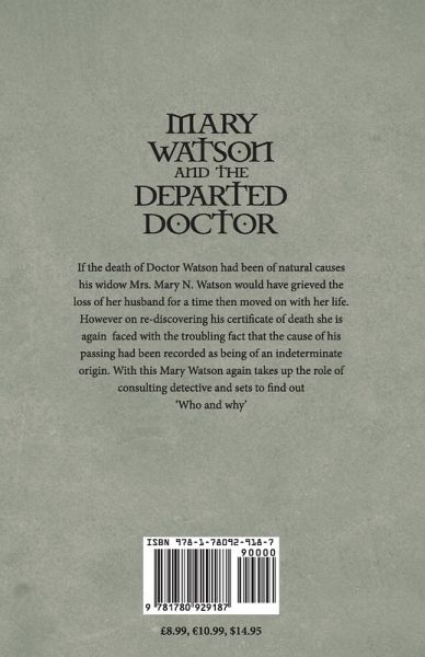 If the death of Doctor Watson had been of natural causes, his widow Mrs. Mary N. Watson would have grieved the loss of her husband for a time then moved on with her life. However on re-discovering his certificate of death she is again is faced with the troubling fact that the cause of his passing had been recorded as being of an indeterminate origin. With this Mary Watson again takes up the role of consulting detective and sets to find out 'who and why'.