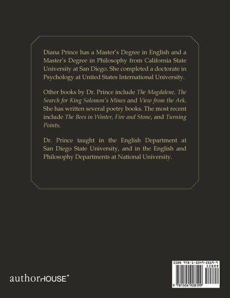 Diana Prince has a Master's Degree in English and a Master's Degree in Philosophy from California State University at San Diego. She completed a doctorate in Psychology at United States International University. Other books by Dr. Prince include The Magdalene, The Search for King Solomon's Mines and View from the Ark. She has written several poetry books. The most recent include The Bees in Winter, Fire and Stone, and Turning Points. Dr. Prince taught in the English Department at San Diego State University, and in the English and Philosophy Departments at National University.