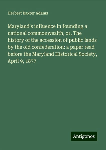 Maryland's influence in founding a national commonwealth, or, The history of the accession of public lands by the old confederation: a paper read before the Maryland Historical Society, April 9, 1877 - Adams, Herbert Baxter