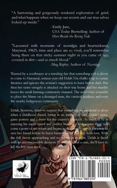 Warned by a soothsayer at a traveling fair that something evil is about to come to Maryneal, sixteen-year-old Delah Nix chalks it up to carnie theatrics and ignores the woman's suggestion to leave before dark. But then her sister is savagely attacked on their way home, and her murder leaves the small farming community stunned. The authorities scramble to place the blame on a deranged man, the carnival workers, and even the nearby Indigenous community. Delah, however, starts to suspect that something supernatural is afoot when a childhood friend, bitten in an attempt to save Delah's sister, gains powers and a thirst for the county's livestock. As much as he is enjoying his super speed and perfect hearing, Delah senses there will come a point of no return and begins to desperately search for a way to save her friend before he hurts himself or the girl they both love. With the full moon approaching and no salvation in sight, Delah is faced with an unconscionable decision: If she can't find a cure, she'll have to kill the boy next door.