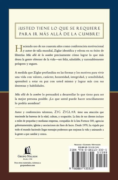 Zig Ziglar, uno de los conferencistas motivacionales más solicitados de los Estados Unidos, transmite su mensaje de humor, esperanza y entusiasmo a audiencias de todo el mundo. Ha escrito numerosos libros que han alcanzado categoría de éxito de librería a nivel mundial.