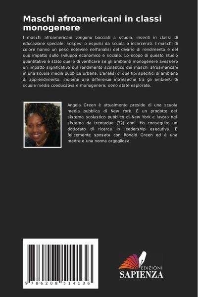 I maschi afroamericani vengono bocciati a scuola, inseriti in classi di educazione speciale, sospesi o espulsi da scuola o incarcerati. I maschi di colore hanno un peso notevole nell'analisi del divario di rendimento e del suo impatto sullo sviluppo economico e sociale. Lo scopo di questo studio quantitativo è stato quello di verificare se gli ambienti monogenere avessero un impatto significativo sul rendimento scolastico dei maschi afroamericani in una scuola media pubblica urbana. L'analisi di due tipi specifici di ambienti di apprendimento, insieme alle differenze intrinseche tra gli ambienti di scuola media coeducativa e monogenere, sono state esplorate.