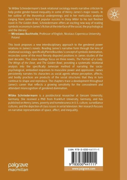 This book proposes a new interdisciplinary approach to the gendered power relations in James's novels. Reading James's narrative form through the lens of relational sociology, specifically Pierre Bourdieu's concept of symbolic domination, reconciles some of the most fiercely disputed positions in James studies of the past decades. The close readings focus on three novels, The Portrait of a Lady, The Wings of the Dove, and The Golden Bowl, providing a systematic relational analysis into the specifically Jamesian method of narrating the socio-psychological, embodied responses to masculine power and oppression. James persistently narrates his characters as social agents whose perception, affects, and bodily practices are products of the social structures that they in turn continue to shape and reproduce. The chapters trace a development throughout James's career that reflects a growing sensitivity for the concealment and attendant misrecognition of gendered domination.