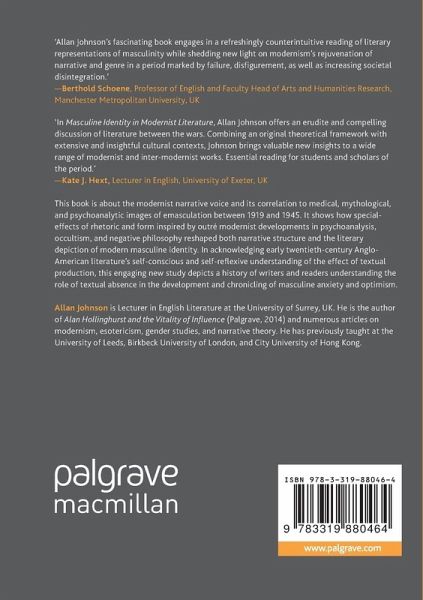 This book is about the modernist narrative voice and its correlation to medical, mythological, and psychoanalytic images of emasculation between 1919 and 1945. It shows how special-effects of rhetoric and form inspired by outré modernist developments in psychoanalysis, occultism, and negative philosophy reshaped both narrative structure and the literary depiction of modern masculine identity. In acknowledging early twentieth-century Anglo-American literature's self-conscious and self-reflexive understanding of the effect of textual production, this engaging new study depicts a history of writers and readers understanding the role of textual absence in the development and chronicling of masculine anxiety and optimism.