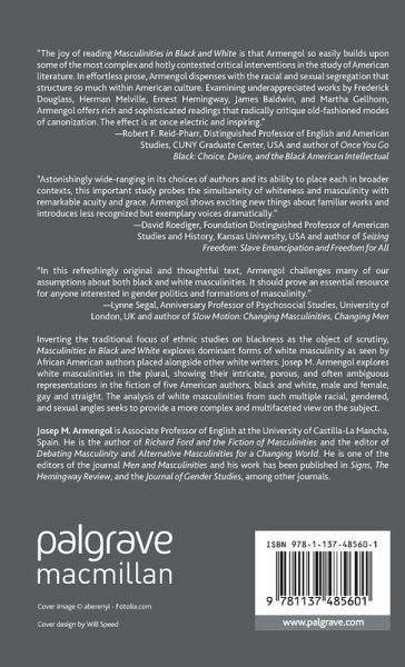 "The joy of reading Masculinities in Black and White is that Josep M. Armengol so easily builds upon some of the most complex and hotly contested critical interventions in the study of American literature. In effortless prose, Armengol dispenses with the racial and sexual segregation that structure so much within American culture. Examining underappreciated works by Frederick Douglass, Herman Melville, Ernest Hemingway, James Baldwin, and Martha Gellhorn, Armengol offers rich and sophisticated readings that radically critique old-fashioned modes of canonization. The effect is at once electric and inspiring." - Robert F. Reid-Pharr, Distinguished Professor of English and American Studies, CUNY Graduate Center, USA and author of Once You Go Black: Choice, Desire, and the Black American Intellectual