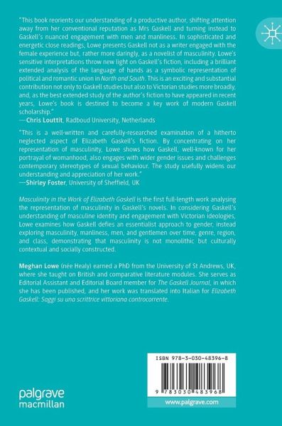 This book is the first full-length study to focus on the representation of masculinity in Elizabeth Gaskell's novels. In examining Gaskell's understanding of masculine identity as a social construct and considering how her writing engages with Victorian ideologies of gender, this book demonstrates that Gaskell defies an essentialist approach to gender and instead explores masculinity over time, genre, region, and class, making it clear that masculinity is not monolithic but relational, culturally constructed, and dependent on many contexts. It analyses Gaskell's depiction of what it means to be a 'man' and a 'gentleman', exploring Mary Barton, North and South, Ruth, Cousin Phillis, Sylvia's Lovers, and Wives and Daughters, as well as contemporary Victorian works and key contexts such as sympathy, historic change, and industrialism. The target audiences are academics, as well as undergraduate and postgraduate students and research specialists, and it will most appeal toVictorian Literature, Gender Studies, and Masculinity Studies disciplines.