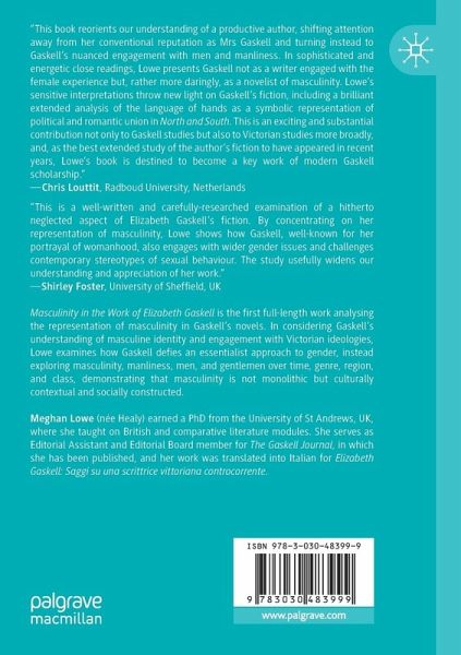 This book is the first full-length study to focus on the representation of masculinity in Elizabeth Gaskell's novels. In examining Gaskell's understanding of masculine identity as a social construct and considering how her writing engages with Victorian ideologies of gender, this book demonstrates that Gaskell defies an essentialist approach to gender and instead explores masculinity over time, genre, region, and class, making it clear that masculinity is not monolithic but relational, culturally constructed, and dependent on many contexts. It analyses Gaskell's depiction of what it means to be a 'man' and a 'gentleman', exploring Mary Barton, North and South, Ruth, Cousin Phillis, Sylvia's Lovers, and Wives and Daughters, as well as contemporary Victorian works and key contexts such as sympathy, historic change, and industrialism. The target audiences are academics, as well as undergraduate and postgraduate students and research specialists, and it will most appeal toVictorian Literature, Gender Studies, and Masculinity Studies disciplines.