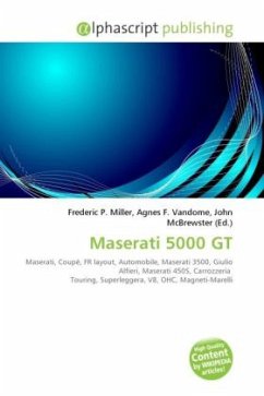 High Quality Content by WIKIPEDIA articles! Maserati 5000 GT (1959 - 1965) were thirty-four 2- door coupé automobiles, made by Maserati of Italy. The first car in the Tipo 103 series, was the Shah of Persia, delivered to Mohammad Reza Pahlavi, who had been impressed by the Maserati 3500. He commissioned Maserati's chief engineer Giulio Alfieri to utilize a slightly modified 5-litre engine from the Maserati 450S on the 3500GT's chassis. Carrozzeria Touring developed the superleggera tubing and aluminum body of the two- seater coupe. The second car, also by Touring, was displayed at Salone dell'automobile di Torino 1959. Specifications for the 5000 GT were: Maserati 450S- derived V8 cylinder, four-OHC, 4937.8 cc, Lucas mechanical injection or four 45 DCOE Weber carburetor (325 bhp at 5500 rpm), mechanical Magneti- Marelli ignition, dual spark plugs and dual fuel pump 4-speed ZF (later 5-speed), Front discs, rear drums (later all-discs). In 1960 the engine got some modifications andreceived a displacement of 4940cc with a bigger stroke and a smaller bore; in the new configuration engine developed 340 bhp.