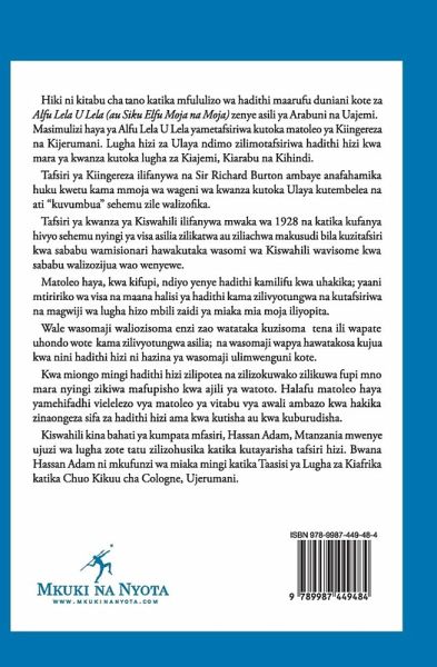 This is the first unabridged translation into Swahili of the Arabian Nights. This translation was made from English and German texts, two western languages in which Arabian Nights were first translated by the orientalist Sir Richard Burton and published in the west. The first Swahili translation was made in 1928, but parts of the original works deemed offensive by missionaries were expurgated from the texts. This volume is Book 5 of nine books; the full edition is the first and complete translation by a distinguished Tanzanian Swahili language scholar and writer, Hassan Adam, who has command of three languages, German, English and Arabic. Until recently Hassan Adam was for many years lecturer at the Institute of African Languages at the University of Cologne.