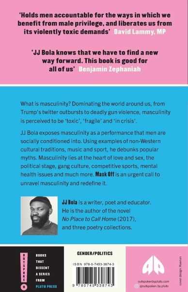 Dominating the world around us, from Trump's twitter outbursts to deadly gun violence, from male suicide rates to incels on Reddit and 4chan, masculinity is perceived to be 'toxic', 'fragile' and 'in crisis'. In Mask Off, JJ Bola exposes masculinity as a performance that men are socially conditioned into. Using examples of non-Western cultural traditions, music and sport, he shines light on historical narratives around manhood, debunking popular myths along the way. He explores how LGBTQ men, men of colour, and male refugees experience masculinity in diverse ways, revealing its fluidity, how it's strengthened and weakened by different political contexts, such as the patriarchy or the far-right, and perceived differently by those around them. At the heart of love and sex, the political stage, competitive sports, gang culture, and mental health issues, lies masculinity: Mask Off is an urgent call to unravel masculinity and redefine it.