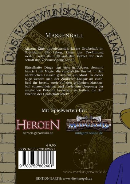 Alkron: Eine unbedeutende, kleine Grafschaft im Grenzland. Ein Lehen, kaum der Erwähnung wert ... wäre da nicht auf dem Gebiet der Grafschaft das Verwunschene Land.Rätselhafte Dinge tun sich in Alkron. Jemand hantiert mit Magie, die zu groß für ihn ist. In den nächtlichen Gassen geschieht ein Mord. In dieser Lage wendet sich der Zauberer Esligar an euch. Seid ihr bereit, euch auf den gräflichen Maskenball einzuschleichen und nach dem Ursprung der magischen Präsenz Ausschau zu halten, die den Frieden der Grafschaft stört?Mit Spielwerten für HEROEN (http://heroen.gerwinski.de) und MIDGARD (http://midgard-online.de).
