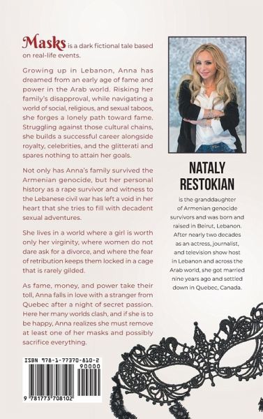 Masks is a dark fictional tale, based on true-life events. It narrates the adventures of a young Armenian girl born in Lebanon in the seventies. She dreams of fame and power in Lebanon and the Arab world and shows resilience and motivation beyond her years. The novel delves into the world of the protagonist, Anna, who is surrounded by social, religious, and sexual taboos. She fiercely breaks the chains to enter the world she has strived to reach, in a seemingly conservative society barely emerging from a civil war. She builds her success on her remaining values, challenging her fate and sparing no way means to attain her goals. As a disappointment to her parents, she walks the challenging paths alone, making her way toward fame and fortune despite lacking the support system to do so. Doors begin to open for her, and she enters the world of Arab celebrities. She is now a public figure in the Middle East, living an immoral married life in a materialistic world surrounded by influential business people and royal family members. She tries, in vain, to fill the void in her soul with sexual adventures and controversy by taking a wide variety of lovers. Her adventures invariably end in misery, doing nothing to awaken her from her numbness. Still, her vivid, out-of-control personality helps her move forward while simultaneously getting her in trouble. In the early stages of her life, she has suffered the unthinkable, being bullied and raped, with the civil war a constant backdrop throughout most of her childhood. The novel delves deep into Anna's mind as she has flashbacks of the trauma she has suffered, offering the reader a hint of an explanation for her behavior. In a society in which men dominate women, she is one of the few who realize that fashion, social status, plastic surgeries, and bright smiles are not the answer to happiness. She lives in a world where a girl is only worth as much as her virginity, where women do not dare to ask for a divorce, where the fear of retribution keeps them locked in a cage that is very rarely gilded. As fame, money, and power slowly eat at her soul, the arrogant Anna falls in love with a total stranger-a young, single bachelor from Canada-after a night of secret passion. That is where the story begins to unravel as she returns home with a scandal in her back pocket, her eyes and ears and heart tuned to this man instead of her husband. Anna realizes that neither her marriage nor her achievements have ever made her happy, so she decides to throw it all away. The lies and deceit that fill the so-called glamorous life she has been leading are floating up to the surface, including her husband's infidelity and the critical steps she has taken to reach the top. Marriage, family, career-all destroyed to be united with the stranger. She starts a new battle, this time struggling to change her destiny for someone she barely knows, who lives oceans apart and offers her nothing except his heart. She risks everything, turning her whole life upside down. Anna realizes that her happiness, inner peace, and love are found worlds away from her own, with someone she would never have expected to be her soul mate. Still, Anna's sacrifices are not behind her, and the struggle has not yet ended, although she has found what she has needed all her life: redemption and unconditional love. The stranger enigmatically hints at emotions in Anna that have been hidden for a long time behind the masks of her dark and shallow lifestyle. The characters in the story are the voices of so many who do not dare to speak up in a world where social and religious standards openly chastise the very actions that behind closed doors have become the ultimate paradigmatic way of life.