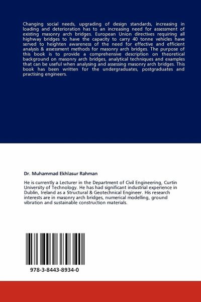 Changing social needs, upgrading of design standards, increasing in loading and deterioration has to an increasing need for assessment of existing masonry arch bridges. European Union directives requiring all highway bridges to have the capacity to carry 40 tonne vehicles have served to heighten awareness of the need for effective and efficient analysis & assessment methods for masonry arch bridges. The purpose of this book is to provide a comprehensive description on theoretical background on masonry arch bridges, analytical techniques and examples that can be useful when analysing and assessing masonry arch bridges. This book has been written for the undergraduates, postgraduates and practising engineers.