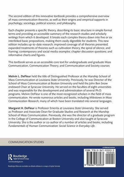 Each chapter presents a specific theory, describing its basic structure in simple formal terms and providing an accessible summary of the research studies and scholarly writings from which it developed. It breaks each complex theory down into five or six interlinked basic propositions, making them easily digestible for students. This new edition includes up-to-date research; improved coverage of all theories presented; expanded treatments of theories such as cultivation theory, the spiral of silence, and framing; contemporary and social media examples; chapter discussion questions; and informative charts and figures.